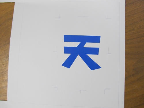 感光をさせて現像することによって、水がのる部分(青い文字の部分)と水をはじく部分(版の白い部分)に分けられます。