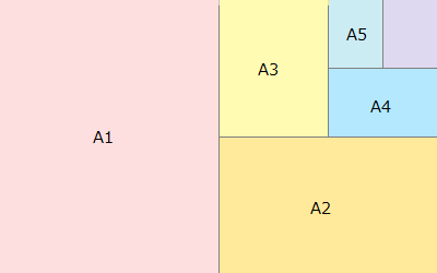 縦と横が1:√2という比率で、A0の半分がA1、A1の半分がA2という順番になります。