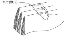 →2つ折り用紙の中心部分に針金で留める方法です。
